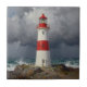 Stormy Red Lighthouse Coastal Ceramic Tile
