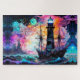 Stormy seas, boat lighthouse Moon Abstract Jigsaw Puzzle