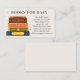 A book request insert card for baby shower. Featuring a stack of whimsical books and poem: "ONE SMALL REQUEST, WE HOPE NOT TOO HARD