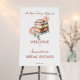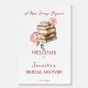 Story book new chapter bridal shower welcome sign board, books reading themed bridal shower welcome sign, watercolor pile of books and blush roses casual handwriting font
