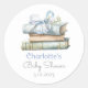 Storybook New Chapter Blue bow baby boy shower Classic Round Sticker