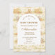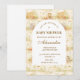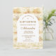 A sweet storybook-style safari design featuring gentle watercolor baby animals including lions, giraffes, and elephants surrounded by soft jungle greenery and a delicate botanical background. The warm neutral palette of cream, honey gold, and soft olive creates a timeless nature-inspired aesthetic, while the elegant arched layout provides a beautiful space for event details.