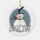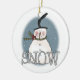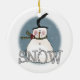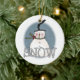 A snowman with a scarf and a high stovepipe hat and text that reads "SNOW" on a snowman keepsake holiday ornament you're sure to love for years to come!