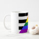 The V rainbow represents the A in the word activism, and the rainbow colors represent the gay pride flag. The black and white stripes represent heterosexuality.