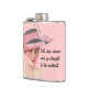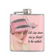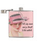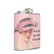 This flask features a vintage image of an elegant woman, on a customizable pink background, with the customizable text, "Let's skip dinner and go straight to the cocktails".