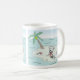 Classic white 11 oz. mug with an image, on both sides, of a drawing of a castaway on a desert isle taking a selfie. The thought bubble reads, “Of all creatures, why me?” See matching shot glass. See the entire Shipwreck Mug collection in the FOOD/BEV | Dishes section.