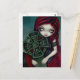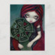 Strangely Lonely - a big eyed gothic beauty with scarlet and raven hair - clutching a tombstone in the shape of a Celtic cross. I love this painting, I painted it for Dragon*Con 2008. This is my own original acrylic painting.