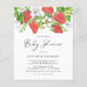 Invite guests to your event with this customizable baby shower invitation. It features watercolor garland of strawberries and strawberry blossoms. Personalize this strawberry baby shower invitation by adding your own event details. This berry baby shower invitation is perfect for summer baby showers.