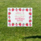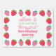Sweet strawberries girl's "Berry First Birthday Party" "Welcome" design featuring a frame of strawberries and a back checked pattern in berry pink. Composite design by Holiday Hearts Designs.