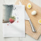 A kitchen towel with a summery graphic of a bunch of strawberries overflowing in a bucket.