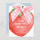 A large red stawberry with a pink bow for a Berry First Birthday party. Personalize and add your party details.