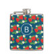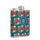 Strawberry and Flower Blue Pattern Monogrammed Flask