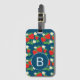 Strawberry and Flower Blue Pattern Monogrammed Luggage Tag