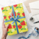 Strawberry and Flowers Pattern Yellow Wrapping Paper