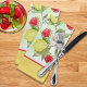 Colorful cloth napkins (buy as a set or as singles) that feature strawberries and lemons (with blossoms) throughout.