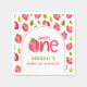 Personalized Strawberry Berry First Birthday party napkins for baby girl turning sweet ONE. Watercolor strawberries, leaves and white floral accents. Berry 1st birthday party supplies.