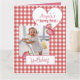 This version has desaturated gingham check on back of card- strawberry instead of bright red.