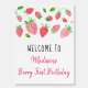 Welcome your party guests with an adorable personalized sign. This cute design features hand painted watercolor strawberries and greenery.