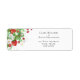 This return address label design features a patch of strawberries, white flowers and greenery.
