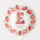 Add a fun and festive touch to your birthday decor with this strawberry-themed birthday balloon! Featuring a watercolor letter "E" cake design, topped with fresh strawberries, pink frosting, and a glowing candle, this balloon is perfect for decorating a strawberry birthday party. The strawberry-themed border adds a charming touch, making it a delightful addition to party decorations, photo backdrops, and birthday surprises!