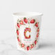 Celebrate in style with this charming strawberry-themed birthday paper cup! Featuring a whimsical watercolor illustration of the letter "C" as a delicious strawberry cake, this design is perfect for kids’ parties and summer celebrations. The cake is adorned with fresh strawberries, creamy pink frosting, and a glowing birthday candle, adding a festive touch. Surrounding the cake, a beautiful border of hand-painted strawberries and green leaves creates a lovely frame. The design is mirrored on both sides of the cup for a seamless look. A perfect choice for a personalized and sweet birthday party theme!