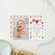 On the left side of this cute colorful invitation is a photo you can personalize with the picture of your baby girl, and on the right the text reads "Thank you berry much! Thank you for coming to my birthday party. I loved your gift and sweet well wishes. Love". You can personalize the name. The text is bordered by colorful strawberries, leaves and hearts in red, pink, yellow and green. The backsideshows a colorful strawberries and love hearts pattern.