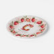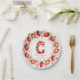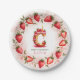 Celebrate in style with this adorable strawberry-themed round paper plate! The elegant border features a circular arrangement of hand-painted strawberries, with a mix of whole and sliced berries, delicate green leaves, and tiny white blossoms. At the center, a beautifully illustrated letter "C" cake takes the spotlight, decorated with pink frosting, juicy strawberries, and a glowing birthday candle. The soft watercolor background blends seamless shades of blush and rosy pink, creating a festive and charming atmosphere. Perfect for strawberry-themed birthdays, fruit lovers, and summer celebrations. Pair with matching invitations and party decor for a coordinated look!