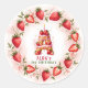 Add a sweet and personalized touch to your birthday party favors with this adorable strawberry-themed sticker! Featuring a watercolor letter "A" designed as a delicious strawberry cake, topped with fresh berries, pink frosting, and a glowing candle. A vibrant strawberry border enhances the design, making it perfect for sealing envelopes, decorating gift bags, or adding charm to party decorations. Ideal for a strawberry birthday celebration!