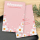Earring jewelry display card featuring white strawberry blossom on a pink background and your company or design name in a retro font.