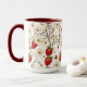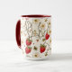 This combo mug features a charming botanical strawberry design, illustrated with rich red berries, delicate white blossoms, and soft green leaves woven together with graceful vines. The artwork wraps around the mug in a warm, inviting composition that feels fresh, nostalgic, and beautifully detailed. The contrasting interior and handle color add a modern touch, enhancing the natural tones of the design and giving the mug a stylish, polished look. Perfect for morning coffee, afternoon tea, or cozy kitchen moments, this mug brings a sweet, nature‑inspired accent to everyday routines.
