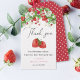 This strawberry themed gift tag design features a patch of strawberries, white flowers and greenery. It is complemented with an elegant and feminine handwritten script style typography and a sweet strawberry seeds reverse side.