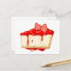 A cute illustration in red and white of a slice of strawberry cheesecake.