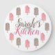 Wall clock features an original illustration of delicious strawberry shortcake and chocolate eclair ice cream popsicles. Just personalize for a fun kitchen accessory.