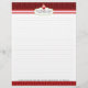 © 2016 Socialite Designs. Our strawberry cupcake bakery lined recipe letterhead has a whimsical design incorporating a cupcake with a strawberry on top, a cloud banner for your business name, a ribbon and polka dot header and footer patterns in red and pink. Font style and color can be changed. Need HELP with customization? Please do not hesitate to contact Socialite Designs.
