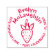 Cute strawberry round return address self inking stamp. Decorated with a strawberry illustration in the lower middle. Personalized with custom name in a fun whimsical style font and mailing information neatly printed in a circle around the fruit.