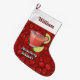 Perfect! Exactly what I ordered! I uploaded a picture of my blue chow, and the screen print was incredible. the back side of the stocking was the red and black checkered print. my puppy's name was also printed on the cuff of the stocking. PERFECT! Highly recommend this product! My puppy's name was screen printed onto the cuff of the stocking, the font was perfect!