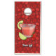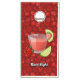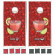 A glass of strawberry daiquiri with garnish. Seamless red background. Custom team name on each cornhole.
