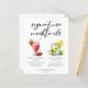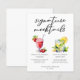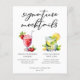 This wedding signature mocktails menu sheet features simple script above two drinks and their ingredients for your reception. A cute Virgin Strawberry Daiquiri drink and non-alcoholic Mint Julep drawing above the couple's names and date.