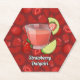 A glass of strawberry daiquiri with garnish. Seamless red background. Custom text.