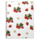 A pretty notebook with a white background with strawberries and blossoms scattered over it. Cute for summer notetaking or journaling, it's small enough to take with you to use on the go.