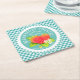 Strawberry Doilies Teal Gingham Square Paper Coaster