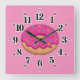 Strawberry Donut with Sprinkles Cartoon Square Wall Clock