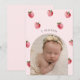 Strawberry first birthday photo milestone banner invitation