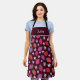This is cute custom apron featuring strawberries pattern in red, pink and purple with white flowers on dark background. Hit personalize button to change the name to your own name