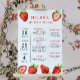 The perfect modern strawberry theme girl's birthday party milestone board featuring watercolor illustration of the red fruit. List all the important birthday stats, fun and corky things they've learned, and the things they have grown to love!