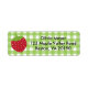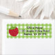 This cheerful design features a strawberry with a light green gingham plaid background.