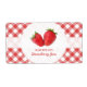 Customizable retro jar labels for homemade strawberry jam, jelly or preserves with fresh strawberries on red and white gingham tablecloth pattern.