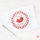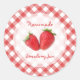 Customizable retro stickers for homemade strawberry jam, jelly or preserves jars with fresh blueberries on red and white gingham tablecloth pattern.