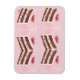Strawberry layer cake slices all in a row on a refrigerator magnet, perfect for your bake shop kitchen .