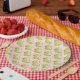 Features a strawberry matcha design on paper plates